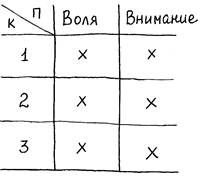 Далее попытаемся поместить в таблицу основные критерии воли и внимания.
