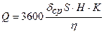 где Q - производительность машины, т/ч; δ ср- средняя насыпная плотность материала,т/м3; S - площадь отсадочного отделения машины, м2; Н— высота отсадочной постели, м; K -коэффициент скорости отсадки, с-1; η - критерий точности разделения.