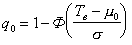 Пусть контролируют верхнее отклонение уровня процесса. Задана верхняя граница технического допуска Тв для контролируемого параметра х. В этом случае долю несоответствующих единиц продукции q0 для процесса в статистически управляемом состоянии определяют по формуле