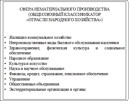Состав отраслей, относящихся к сфере нематериального производства (сфере услуг), отражены на слайдах 1-4 и 1-5.