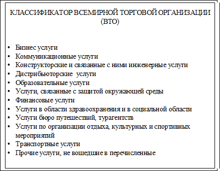 В мировой торговле наблюдается постоянное увеличение объемов экспортно-импортных операций в сфере услуг, доля которых в их общем объеме в настоящее время составляет около 30%. Это в целом соответствует тенденции глобализации мировой экономической системы и большинством авторов расценивается как признак формирования нового типа экономики, характерного для этапа постиндустриального развития. [4].