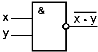 читается как "инверсия x и y". Условное обозначение на структурных схемах схемы И—НЕ с двумя входами представлено на рисунке 5.4.