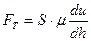 du - разность скоростей движения соседних элементарных соприкасающихся слоев, м/с;