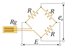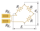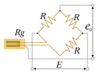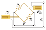 | e0 = (E /4)·Ks· ε0 Ks – K-фактор ε0 – деформация E – питание моста e0 – выходное напряжение Rg – сопротивление тензорезистора R – постоянное сопротивление |