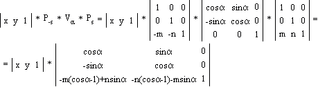Поворот фигуры вокруг произвольной точки (m, n) на произвольный угол α