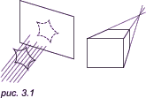 Наиболее распространены аффинные двухмерные и трехмерные преобразования. Их основные геометрические свойства: прямые линии после преобразования остаются прямыми, параллельные — параллельными, плоскости остаются плоскостями и параллельные плоскости — параллельными. Вычерчивание трехмерных объектов, независимо от того на бумаге ли это происходит или на экране дисплея, осуществляется при помощи двухмерных проекций. В плоской проекции каждая точка предмета проецируется определенным образом на плоскость проекции, и ее образ называется точкой проекции. Если линии проекции, соединяющие точки предмета с соответствующими точками проекции, параллельны, то мы имеем плоскую параллельную проекцию. Если же линии проекции сходятся в одной общей точке, то получаемое изображение называется центральной проекцией, или перспективным изображением предмета.