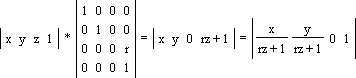 уравнение x'/F = x/(F + zпр) равносильно: x' = xF/(F + zпр) = x/(1 + zпр/F) = x/(1 + rzпр), где r = 1/F, F — фокус.
