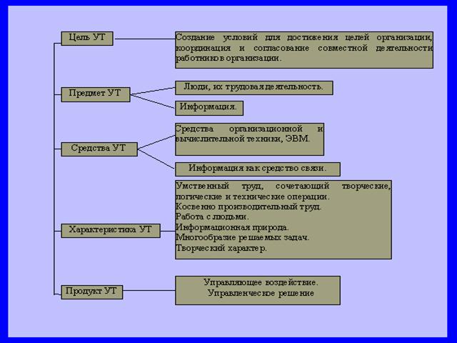 Средствами управленческого труда является организационная и вычислительная техника, а уровень и полнота ее использования определяет культуру и эффективность управления.