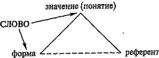 Достоинством этой схемы является то, что в ней значение слова не отождествляется с понятием.