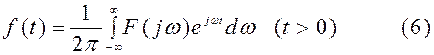 Преобразование (5) называется прямым односторонним преобразованием Фурье. Обратное преобразование Фурье, соответствующее прямому одностороннему преобразованию, остается двусторонним по переменной ω и дается равенством