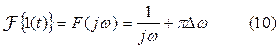 Таким образом, обратное преобразование Фурье функции F(jω) приводит к 1(t), и поэтому правая часть равенства (10) является её спектральной характеристикой.