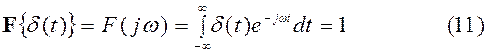 Из (11) и (12) следует, что модуль спектральной характеристики дельта-функции │F(jω) │ равен единице.