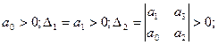 Легко убедиться в том, что Dn=anDn-1. Поэтому последний определитель Гурвица Dn вычислять не нужно, а условие