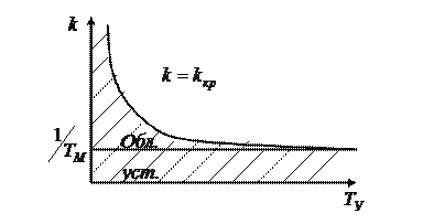 Полагая Тм =const построим область устойчивости в пространстве параметров k и Tу,