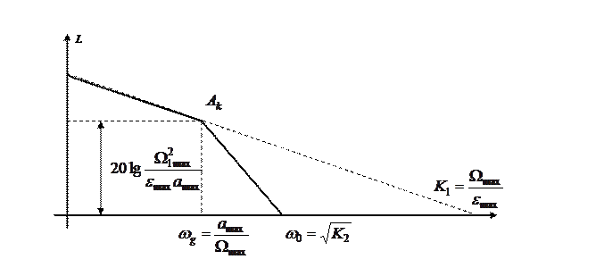 Если задана допустимая ошибка emax при гармоническом входном воздействии g(t)=gmaxSinwgt, то желаемая ЛАХ должна располагаться выше контрольной точки Ак, имеющей на частоте wg ординату