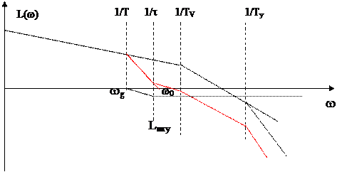 В области средних частот желаемой ЛАХ (см. рис.) соответствует передаточная функция