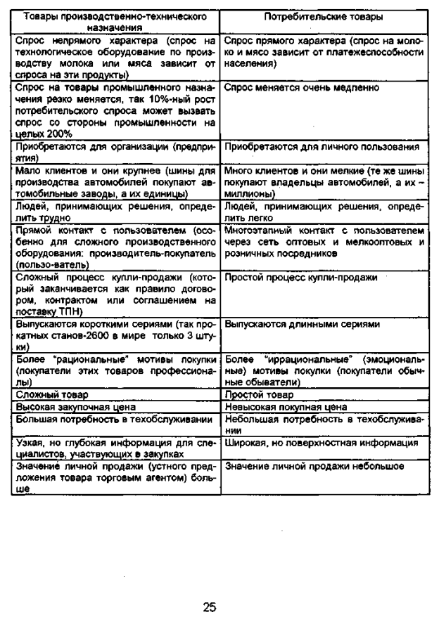 Таблица 1. Сравнительные маркетинговые характеристики промышленных и потребительских товаров