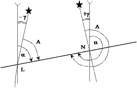 А = Ам + d = 308°33¢ - 6° 27¢ = 302°06¢.