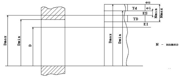 Величина натяга зависит от размера соединяемых деталей и может изменяться от Nmin до Nmax – это предельное значение натягов.