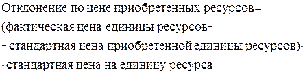 Анализируются отклонения от гибкого бюджета по цене ресурсов, запланированных и фактически затраченных. Данное отклонение рассчитывается по формуле:
