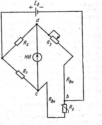 Приборы, работающие по принципу уравновешивания симметричны. Погрешность обусловлена нарушением равновесия в системе моста относительно вершин с,d. Если вершину b перенести к основанию Rt,то система восстановит симметричность, погрешность уменьшится (видно из уравнения).