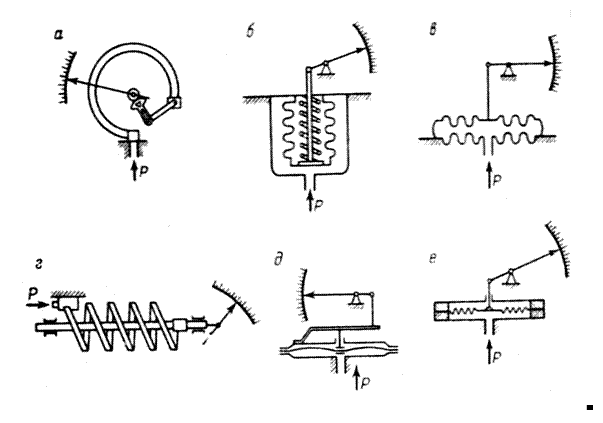 Деформационные (пружинные), измеряющие давление по величине деформации различных упругих элементов или по развиваемой ими силе;
