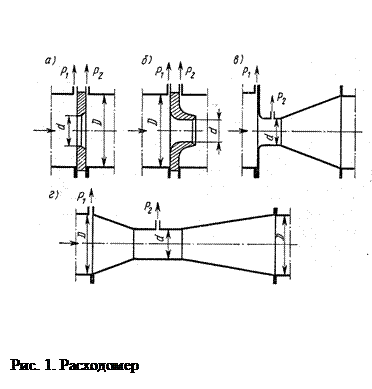 Расходомер (рис.1) состоит из следующих составных частей: измерительных участков трубопровода 1 до и после сужающего устройства; сужающего устройства 2; расходомерного дифференциального манометра 4; интегрирующего устройства 5, определяющего расход за определенный промежуток времени (смену, сутки); импульсных линий 3, служащих для соединения с дифманометром измерительных участков трубопровода. Требования к исполнению и монтажу измерительных участков трубопровода изложены в разделе 10 Правил РД 50-213 – 80. эти правила устанавливают требования к выполнению расходомерных устройств при их разработке, проек