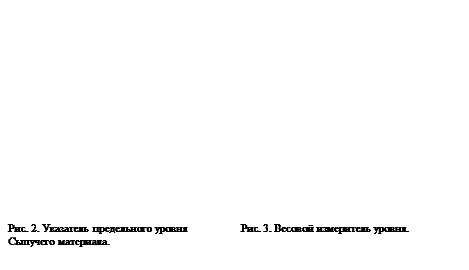 Свойство сыпучих материалов образовывать при насыпании угол естественного откоса позволило создать серию маятниковых приборов, работающих на принципе отклонения материалом чувствительного элемента, выполняемого в виде маятника с жесткой или грубой подвеской. На рис.2. показан указатель предельного уровня сыпучего материала. При повышении уровня в бункере 1 уровня сыпучего материала 2 с углом естественного откоса чувствительный элемент 3 отклоняется от вертикального положения и замыкает контактную схему 4 включения световой сигнализации 5.общим недостатком всех указателей уровня маятникового типа является их зависимость от способа загрузки сосуда (бункера) материалом. Например, при беспорядочной загрузке, когда материал может обтекать маятник со всех сторон, может не произойти ожидаемого отклонения маятника.