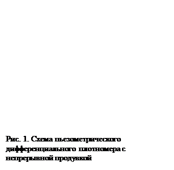 В плотномерах этого типа давление столба жидкости обычно измеряют косвенно непрерывным продуванием через жидкость инертного газа (воздуха), давление которого пропорционально давлению столба жидкости (пьезометрические плотномеры). Такой метод измерения давления столба жидкости позволяет легко передавать показания на расстояние. Инертный газ выбирают в зависимости от свойств жидкости, плотность которой измеряют.
