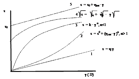 2) τ = τ 0 + (η пл · γ)n, n > 1