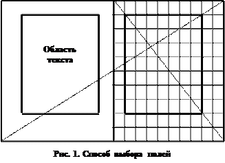 Сначала следует определить ширину части страницы, выделенной под текст (ширину набора), включив сюда при многоколонном наборе ширину межколонных интервалов. Разность между шириной страницы (без учета ширины переплета) и шириной набора следует поделить на три равные части. Одна из этих частей выделяется на внутреннее (или переплетное) поле, расположенное с той стороны листа, которая будет подшиваться. Две оставшихся – на внешнее поле, расположенное с противоположной обрезной стороны листа. Далее следует провести диагональ из левого нижнего в правый верхний угол страницы. Проведя горизонтальные линии через точки пересечения этих диагоналей с границами левого и правого полей можно получить границы верхнего и нижнего полей.
