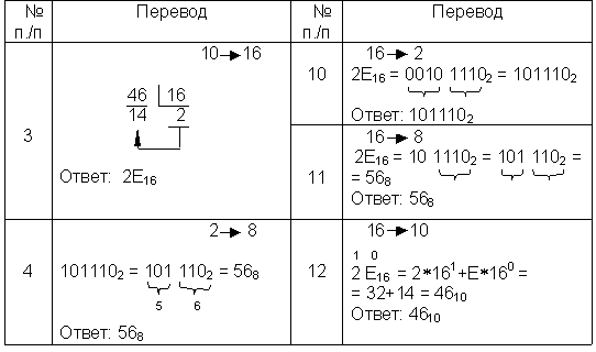 | Ответ: 15+6 = 2110 = 101012 = 258 = 1516. Проверка. Преобразуем полученные суммы к десятичному виду: 101012 = 24 + 22 + 20 = 16+4+1=21, 258 = 2*81 + 5*80 = 16 + 5 = 21, 1516 = 1*161 + 5*160 = 16+5 = 21. |