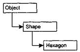 Как мы помним, на вершине любой иерархии в.NET всегда находится базовый класс Object. В нашей ситуации возможности этого класса вначале дополняются возможностями, привнесенными классом Shape. Речь идет о свойствах, полях, методах и событиях, которые являются общими для всех геометрических фигур (shapes). Класс Hexagon (шестиугольник), производный от Shape, дополняет возможности предыдущих двух базовых классов своими собственными уникальными свойствами.