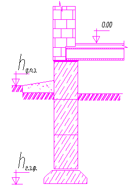 hг.з.ф- глубина заложения фундамента для заданного региона строительства (от отметки дневной поверхности грунта h д.п.г).