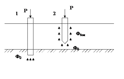 По характеру работы сваи классифицируются на сваи-стойки (1) и висячие сваи (сваи трения) (2).