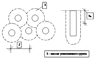 Для изготовления сваи в грунт погружают инвентарную трубу с раскрывающимся или теряемым башмаком. Погружение производят забивкой или вибрированием. В просадочные лессовые грунты, способные держать вертикальные стенки без обсадной трубы, забивают инвентарный сердечник. В результате устройства грунтовых свай разуплотняется верхний слой грунта, называемый буферным. Этот слой срезается, а оставшаяся часть доуплотняется. Рассчитывается по следующей формуле: