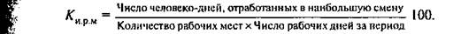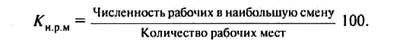 В том случае, если в наиболее заполненную смену используются не все рабочие места, то рассчитывается коэффициент использования рабочих мест в наибольшую смену (Кирм). При расчете на определенную дату он определяется по формуле: