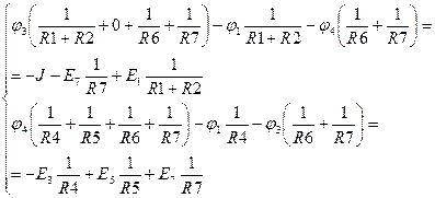 2. Для узлов, потенциалы которых остались неизвестными, записывают уравнения МУП стандартного вида и решают полученную систему.