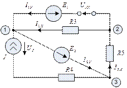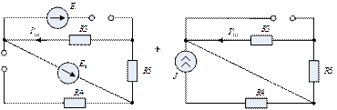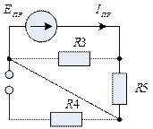 в) в схеме с автономными и управляемым источниками энергии автономные источники энергии заменяют их внутренними сопротивлениями. К зажимам полученной схемы подключают пробный источник и рассчитывают неизвестный пробный ток. Получают