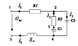 4. Потенциал узла, в который ток этой ветви входит, принимают за ноль. Эту точку располагают в начале комплексной плоскости.