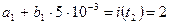 Из графика видно, что а2 = 0,5, а для нахождения a1 и b1 надо составить два уравнения для каких–то двух моментов времени. Например: