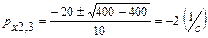 . Можно воспользоваться предыдущей формулой для каждого корня, но проверка показывает, что коэффициенты перед exp оказываются к.с.ч. и можно упростить процедуру, записывая ответ сразу для двух корней в виде: