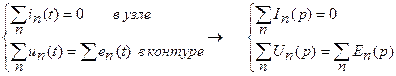 Применим к законам Кирхгофа для мгновенных значений прямое преобразование Лапласа.