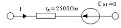 Пусть E = 24 В, R1 = 1500 Ом, R2 = 3000 Ом. Начнем со второго участка, тогда полученная схема замещения.