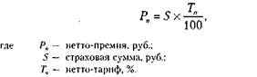 Ожидаемую величину выплаты, а следовательно, и нетто-премию, можно выразить как произведение страховой суммы на коэффициент, отражающий степень риска страховщика. Он называется нетто-тарифом, или нетто-ставкой.