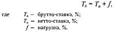 Брутто-ставка имеет ту же структуру, что и страховая премия. Она состоит из уже упомянутой нетто-ставки, которая определяет величину нетто-премии, и нагрузки, отражающей долю расходов страховщика в страховой премии: