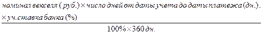 Величина дисконта прямо пропорциональна числу дней оставшихся от дня учета векселей до срока платежа по нему, номиналу векселя и размеру банковской учетной ставки.