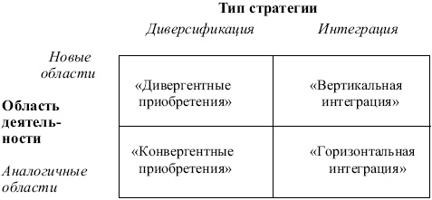 Виды приобретений при диверсификации:
