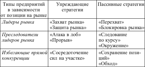 Характеристика упреждающих и пассивных стратегий: