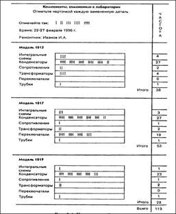 При подготовке контрольных листков нужно следить за тем, чтобы использовались наиболее простые способы их заполнения (цифры, условные значки), число контролируемых параметров было по возможности наименьшим (но достаточным для анализа и решения проблемы), а форма листка была как можно понятнее и удобнее для заполнения даже неквалифицированным персоналом.